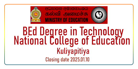 The Kuliyapitiya National College of Technology has announced admissions for the Bachelor of Education- BEd Degree program
