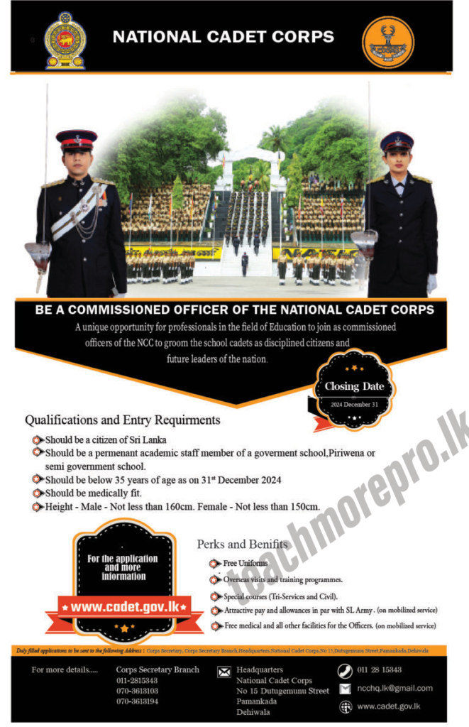 | Application & More Details | www.cadet.gov.lk |
