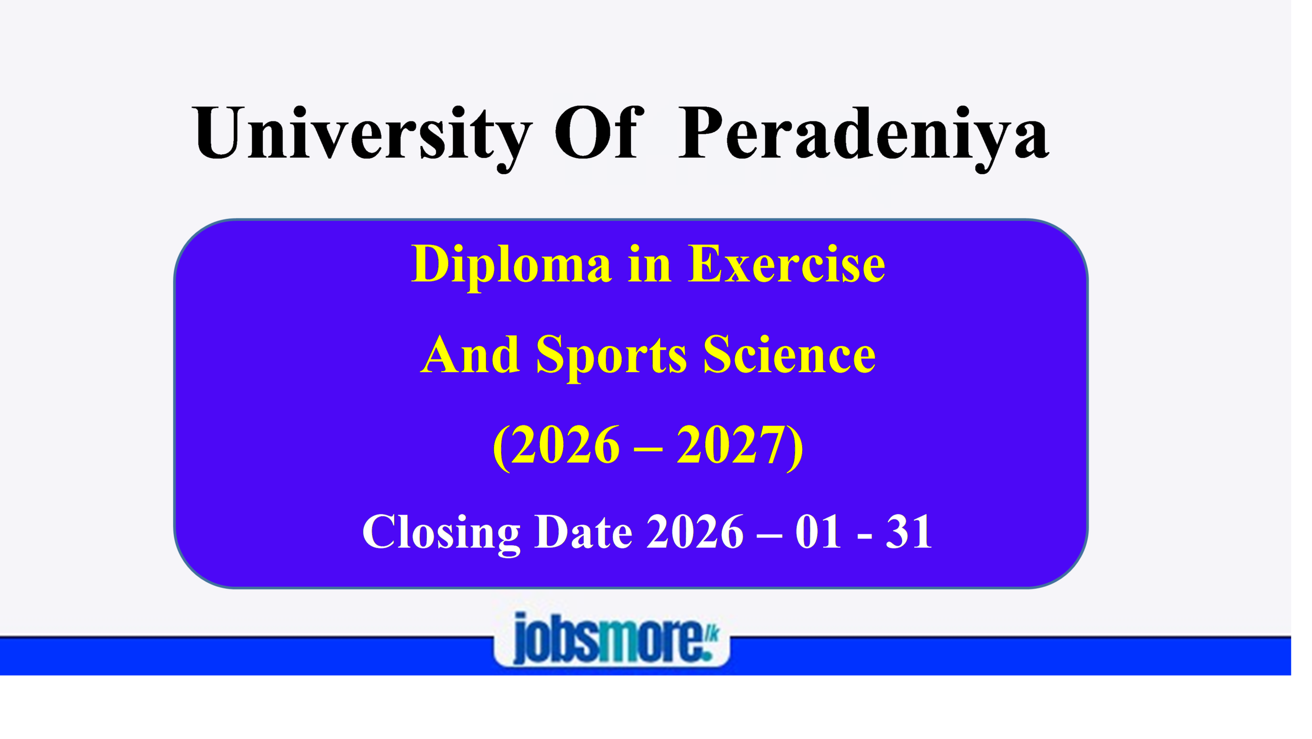 The Faculty of Medicine, University of Peradeniya, has announced that applications are now open for the Diploma in Exercise and Sport Sciences Programme (2026–2027). Key details of the programme are outlined below: