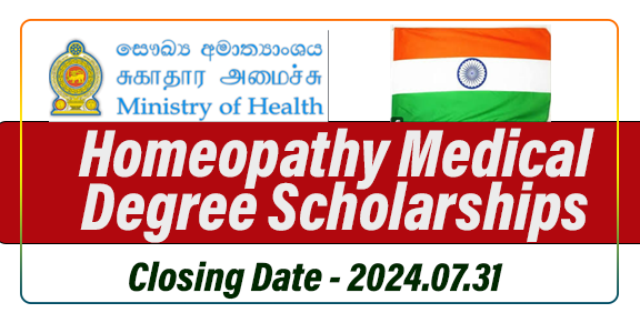 Applications are hereby invited by the Ministry of Health for the selection of suitable Sri Lankan candidates for the awarding of scholarships to study and follow the Homeopathy Medical Degree course for the academic year 2024- 2025 at the National Institute of Homeopathy (NIH) in Calcutta, under the University established at West Bengal, for ten Sri Lankan students, under the auspices of the Indian Government.
