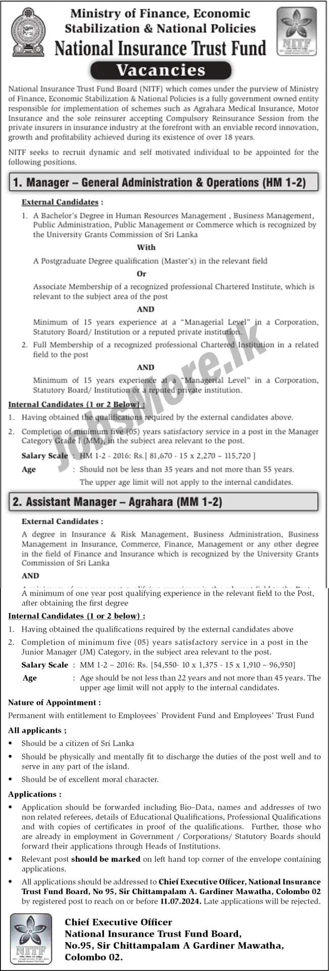 Job Vacancies – National Insurance Trust Fund 2024 – National Insurance Trust Fund is seeking suitable persons for following Posts