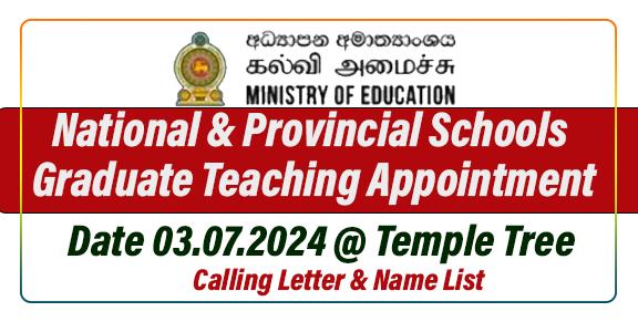 The name list of the English Diploma holders who have been eligible to be appointed for National Schools upon the results of the Practical Test and General Interview held on 10th, 11th, 13th and 20th of May 2024 of the Competitive Examination Conducted for the Recruitment of Diploma Holders in to Sri Lanka Teacher Service Grade 3 – I (C) in terms of the Newspaper Notification published on 15.03.2021 in relation to the above recruitment and the Calling letter for appointment Granting Ceremony, are as follows.