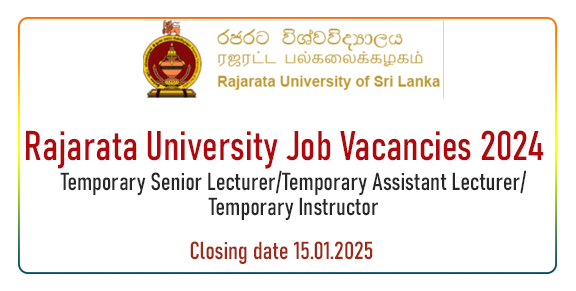The Faculty of Management Studies at Rajarata University of Sri Lanka announced Rajarata University Job Vacancies 2024 and invites applications from qualified candidates for multiple positions across its academic departments.