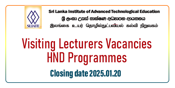 Applications are invited from qualified personals for Visiting Lecturers on the subjects of following Higher National Diploma (HND) programmes at Advanced Technological Institutes (ATIs), under the Sri Lanka Institute of Advanced Technological Education.