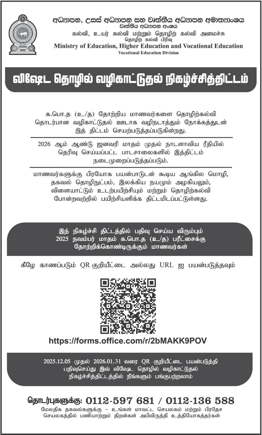 Calling Applications for – Special Career Guidance Programme for GCE A/L Students 2026