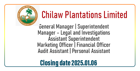 Applications are invited for following Vacancies at Chilaw Plantations Limited (CPL) – 2025